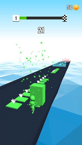 3、在正确的路径上,将所有砖块叠加在一起,如果颜色叠加错误,砖块的数量会相应减少。