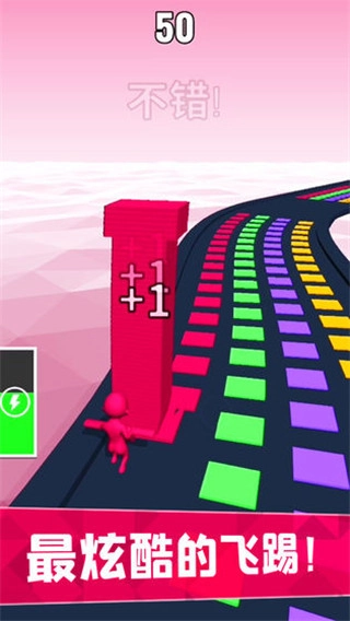 2、每当进入一个新的区域时,游戏会提前发出颜色提示,玩家可以根据提示调整奔跑路径。