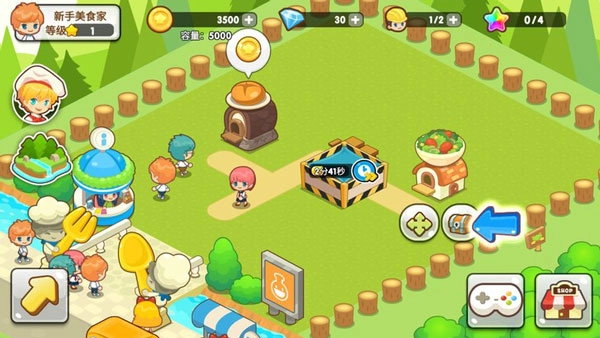 先来看一下游戏的具体玩法:要想实现盈利,首先就需要完成各类美食屋的建立,包括面包店、汤屋、沙拉店和烤肉店等等。除了这些美食屋以外,还需要建立一些座椅供顾客使用,当座椅数不足时,就会有顾客因生气而走掉,这可是非常影响收益的哟。另外,一定的装饰物,例如花丛、树木等等能够为整个餐馆带来格外的魅力值,吸引更多的顾客前来消费。