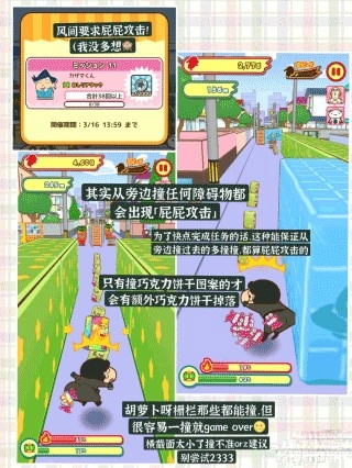 6、从旁边撞任何障碍物都会出现屁屁攻击,只要撞巧克力饼干图案才会有额外巧克力饼干掉落。