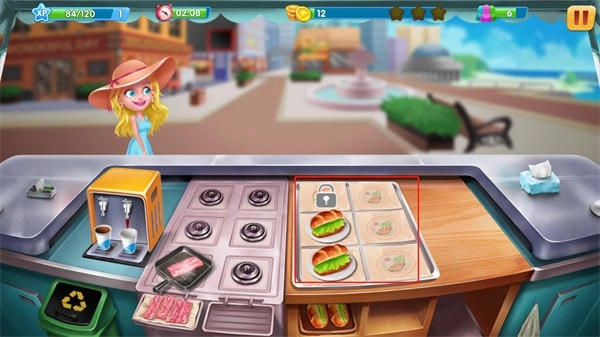 新店开张时,我们一开始只有一个培根和鸡排煎锅,因为生意不断创佳,顾客对培根和鸡排的需求增大,加上煎烤耗时比较长,那么只有一个煎锅的话,客人必然会丧失等待的耐心。花费一定的金币或者钻石购买煎锅,就能提高效率了。你的游戏等级越高,后面就能解锁更多的煎锅数量。