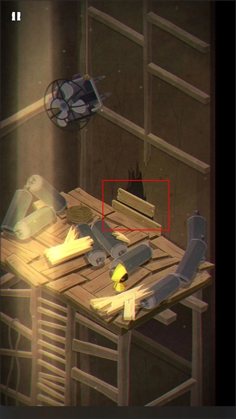一路追着小孩来到一个上锁的房间,小孩发现摩诺没有恶意后二人成为伙伴,然后在二人一起努力,成功将前往阁楼的楼梯放了下来。