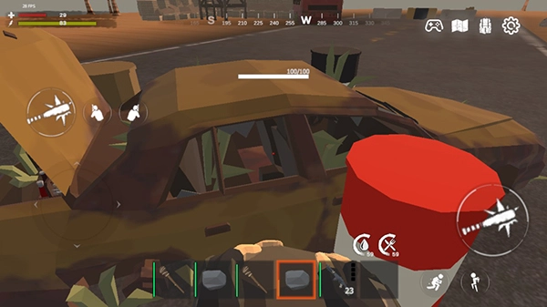 二、汽车在游戏内的用出不大,不建议驾驶,因为汽车的时速最高也就二十多千米每小时而且耗油巨大,汽油的产出可以多开路边的红色油桶获得,但是人奔跑大约有三十多千米每小时体力等三四秒就回好了。