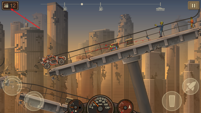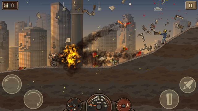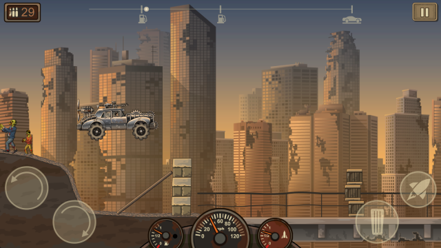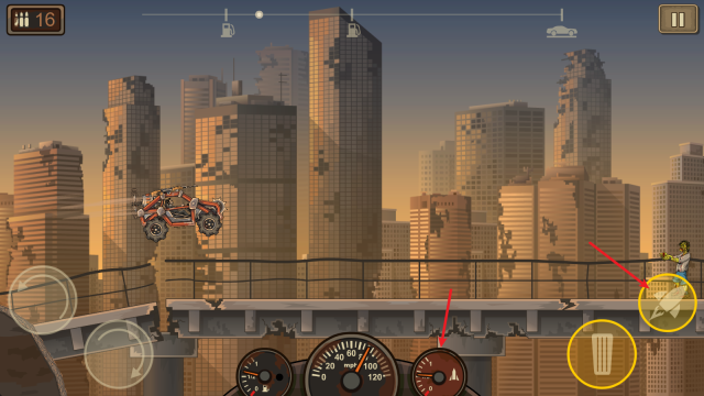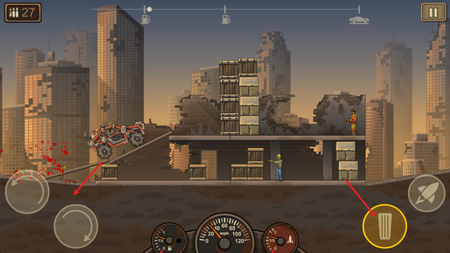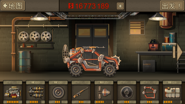 在前进的途中,你会碰到不少挡路的僵尸,既可以给你的战车装配武器来发起攻击,也能用最直接的撞击把它们清除掉。