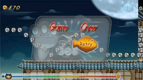 3、轻轻点击一下屏幕,我们的忍者猫就会跳起来。