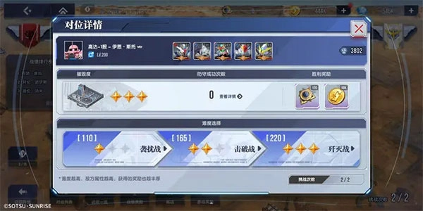 挑战“正常状态”下的敌人时,需要同时选择难度,有袭扰、交战、歼灭(简单、中等、困难)。开始战斗后,会给会给敌方全部机体上一个对应难度的debuff,虽然有这样的debuff,指挥官们也不要掉以轻心。