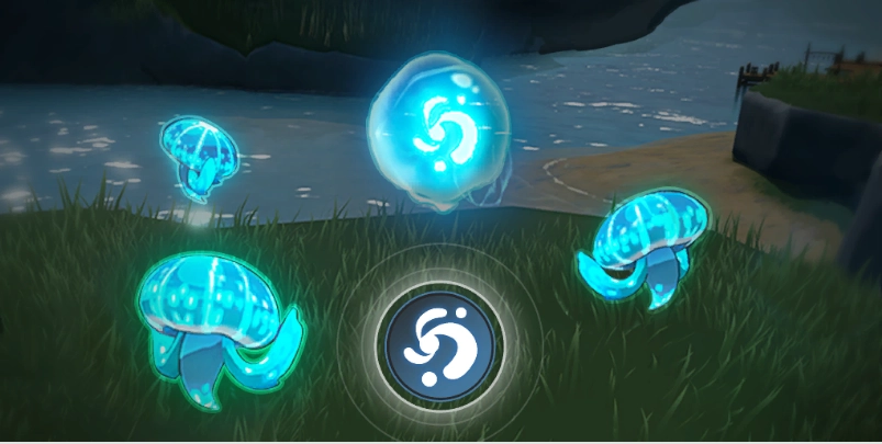 第三个解密,需要使用水系角色,攻击三个水母,然后就可以完成解密。