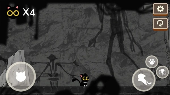 4、进入关卡后控制小猫前往拉杆处,点击右边的按钮,即可控制石柱或者是机关转动