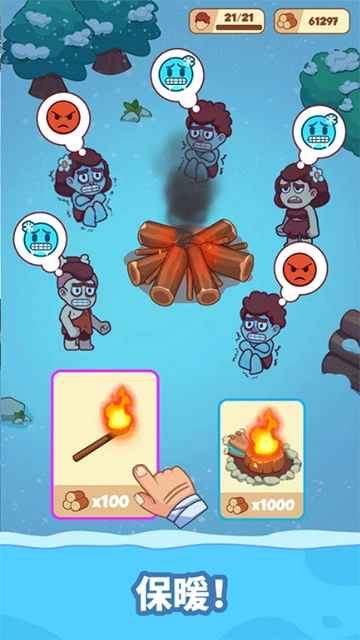 在冰河时代生存大亨中低温的威胁无处不在,你必须密切关注部落成员的体温状况,建造足够温暖的住所,以免他们冻伤或失去生命。同时,饥饿和疾病也随时可能来袭,充足的食物储备和健康管理是成功生存的另一重要环节。随着游戏进展,部落会不断壮大,你将面临更多挑战与机会,从一个小小的聚落逐渐发展为冰天雪地中的坚韧部落。