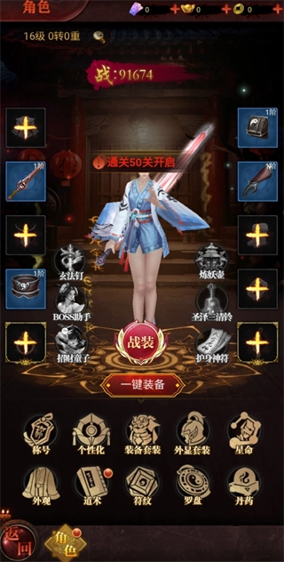 5、给角色提升等级,更换套装,学习道术。
