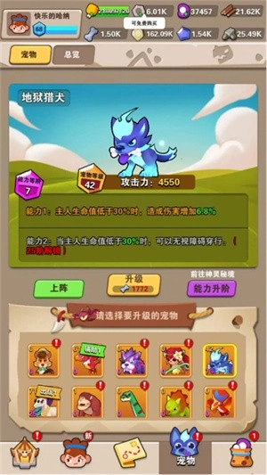 3、宠物使用宠物碎片来解锁和升阶,升阶后解锁宠物能力