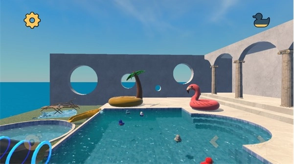 1.控制一只可爱的洗澡玩具小黄鸭在泳池中随波飘荡,轻松释放自身压力,打发无聊时间,休闲惬意。