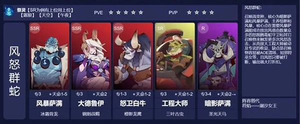 解析:这是召唤流派的一个变种玩法,核心依赖暗星萨满与风暴萨满这两个角色,重点培养暗影和风暴属性的英雄。该流派的关键在于让风暴萨满顺利释放风怒图腾,借助场上数量可观的毒蛇守卫以及其他召唤单位,来触发更多次数的风怒连击效果,进而最大化工程大师被动技能和专属武器带来的收益。不过这个流派存在明显短板:召唤物很容易被邪狩巫女这类带有AOE伤害的角色清理掉,而且一旦风暴萨满的风怒图腾被打断,整个队伍的输出能力就会大幅下降。