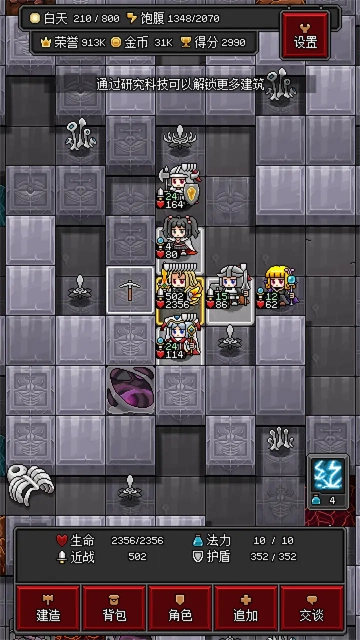 4、天赋选择上优先考虑“重装”(待机状态下能自动回复血盾),装备搭配盾牌并学会盾反技能后,基本可以免疫物理伤害;要注意人物自身实力有局限性,防御塔的作用更为关键,背包里要常备满级的防御塔资源(前期用双弩塔、中期用要塞塔),战斗时就能随时建造防御工事。