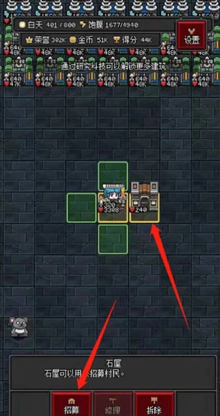 2、石屋建造完成后,点击界面中的 “招募” 功能按钮,进入招募界面查看可招募 NPC 列表。