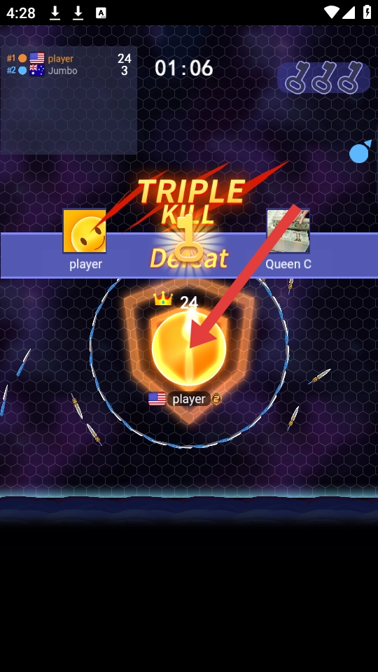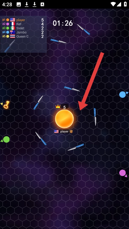 在飞刀竞技游戏里,玩家操控角色投掷飞刀,让飞刀围绕黄色球体构建出兼具防御与攻击功能的阵型,通过战胜对手来累积分数,进而提高自己的排名。