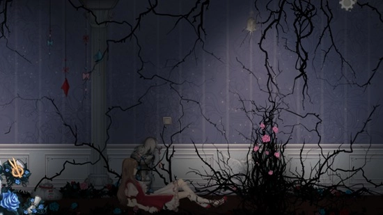 进入玫瑰走廊后,我们先往右边走,右侧地面上有一把钥匙,把它捡起来。