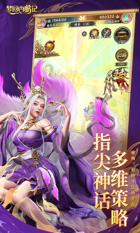 《梦回西游记》最新版本是一款全新的西游题材策略游戏,核心玩法采用回合制模式,依托经典西游IP打造全新体验。在仙气氤氲的唯美场景里,玩家将与熟悉的经典角色携手踏上全新的西游冒险。游戏自由度颇高,你可以在广阔的三界中自由探索,寻觅专属情缘,续写浪漫篇章。新的旅程即将启程,你是否准备好与我们一同踏入这个梦幻世界?
