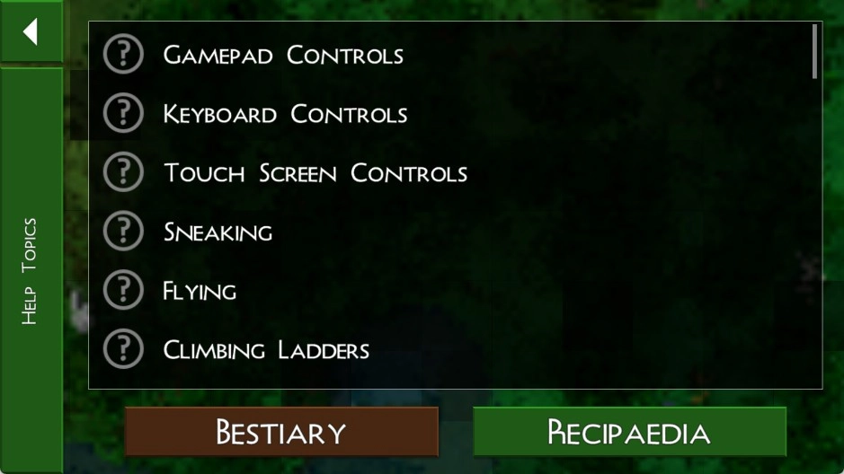 而 "gamepad controls" 选项则提供了操作教程,涵盖移动、采集、建造等关键操作的演示,新手玩家可通过反复练习熟悉按键布局。