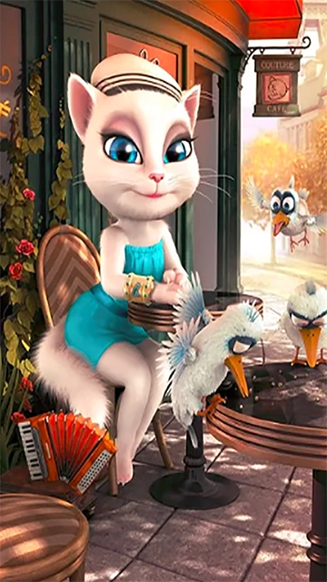 如果抚摸安吉拉,她就会非常高兴,但是如果戳她,她就会发怒;点击礼物按钮可以为安吉拉购买饮料、衣服或者饰品和化妆品等物品;点击心形按钮可以让安吉拉为你读一个签名;点击衣架按钮可以访问安吉拉的衣橱来改变安吉拉的外貌;