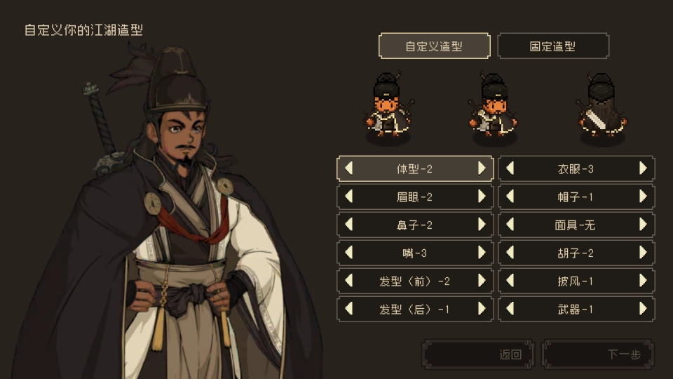 3、你可以自定义你的江湖造型,然后点击下一步;