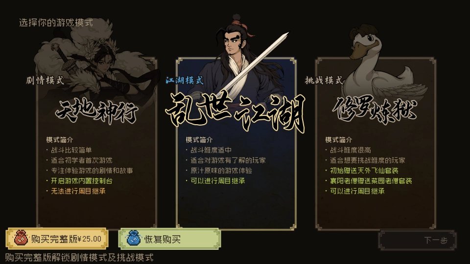 SFC、MD时代的Q版像素风,结合宋代水墨画进行的场景设计,一段纯正的中国传统武侠故事,带大家重温90年代经典RPG的岁月。
