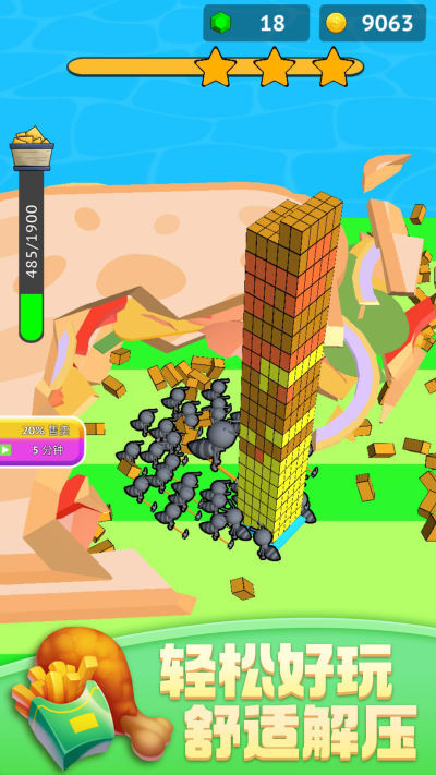 在游戏里,你得帮小蚂蚁盖房子,各类小蚂蚁会用策略协助完成建造任务,还得持续搬运更多材料,尽力打造出完美的蚂蚁家园,简单又有趣的玩法特别解压。