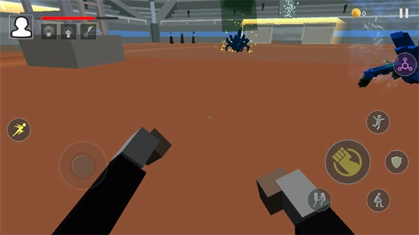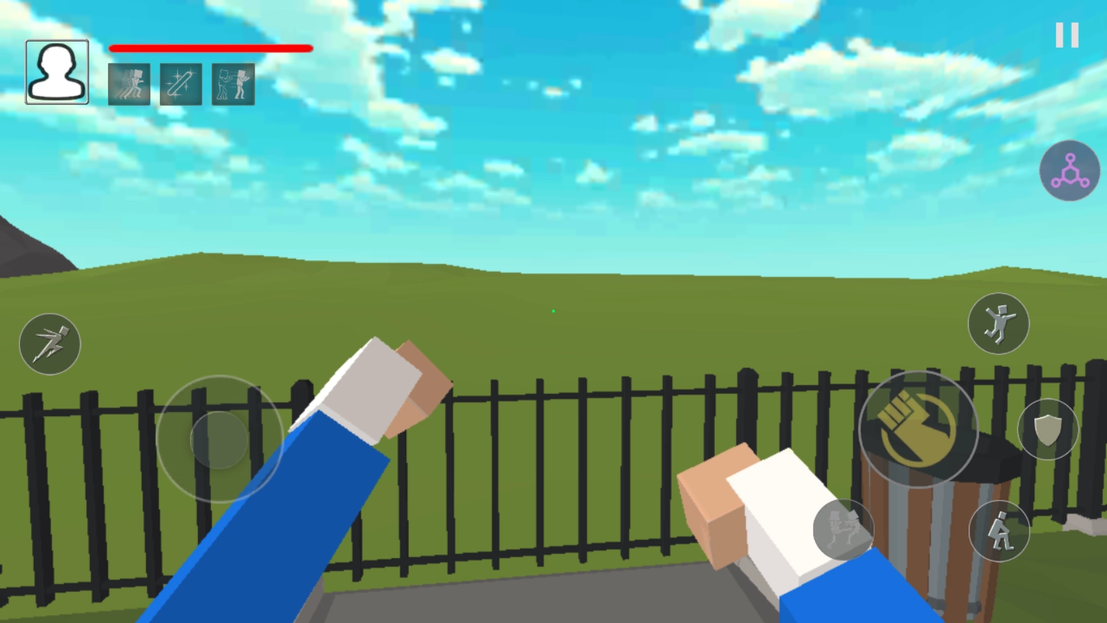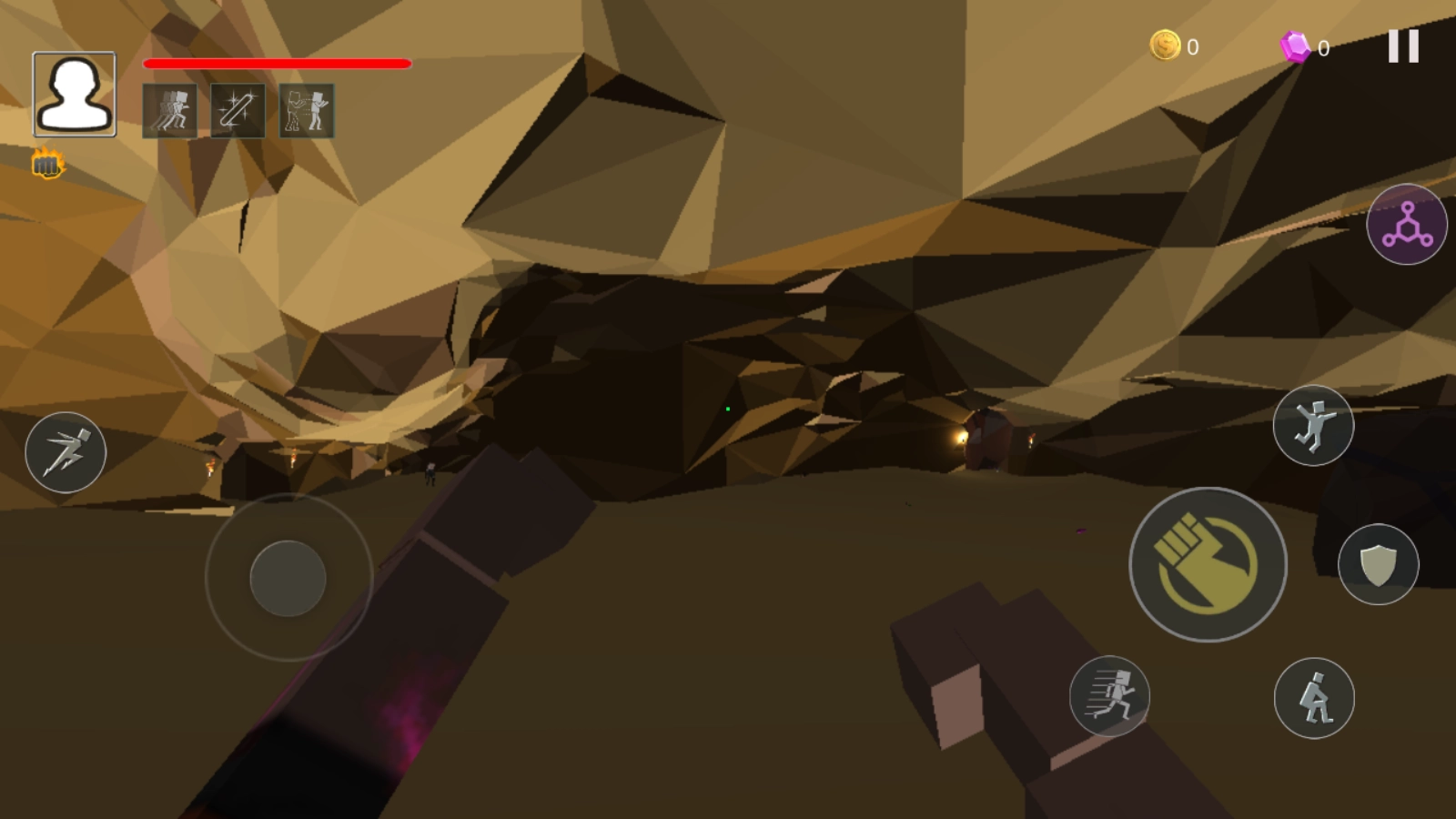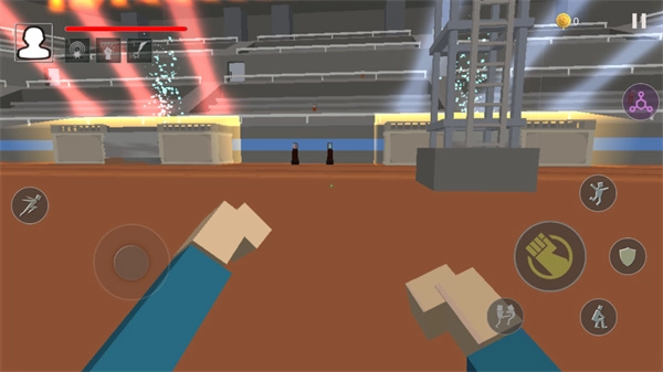 3、来到地图中,左下角的按键控制角色移动,右侧的按键则是攻击、防御、蹲下、跳跃等。