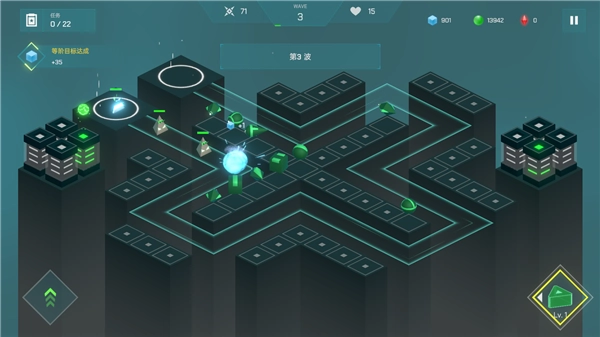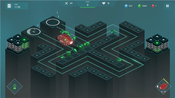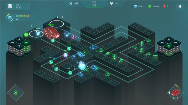 十字防守是一款单机休闲塔防游戏,它采用简洁的3D赛博风格画面,玩法简单易上手。玩家只需依据不同关卡的地形来布置防御塔,通过持续扩展防御范围、升级防御塔来增强实力,最终完成关卡通关,整体体验十分有趣。