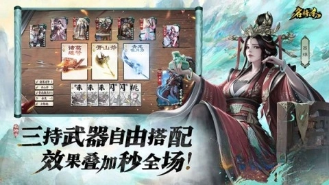 每位武将可以装备三张类型各异的装备牌,玩家可以自由调配,加成效果叠加,使任何角色都能在战场上独占鳌头。