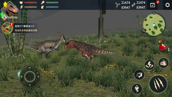 3、玩家可以通过捕食其他恐龙或者数目,来获得经验和进化值来提升自己的恐龙基因。