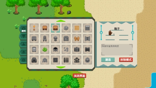 5、点击建筑可以进入建筑面板,选择要打造的物品,如箱子,会给出建筑所需材料,点击建造即可。