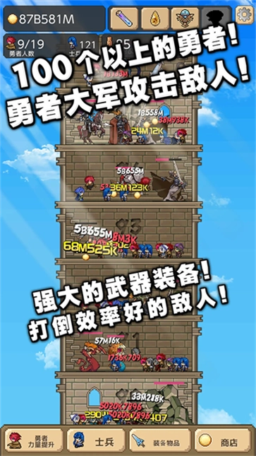 3、购买装备,我们是一定要给自己的小人购买装备的,比如奋斗药水等等,这样玩家才能快速的获得这些攻击的胜利,不然可能一个楼层玩家需要刷很久很久,这样就很烦躁了。