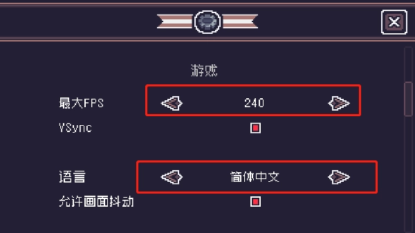 2、在语言设置位置,将语言切换为简体中文即可,除此之外最大FPS值还可设置为最大值,以获得更高的流畅体验。