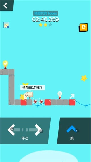 3、怎么才能摘到星星呢?尝试一直按跳跃键。