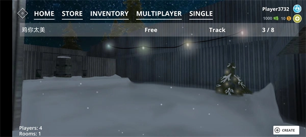 进入游戏后,界面上从左到右排列着五个功能选项,分别是主页(home)、商店(store)、仓库(inventory)、多人游戏(multiplayer)和单人游戏(single)。