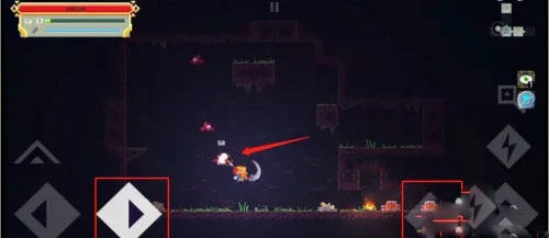 3、通过手机按键,清理洞内地图小怪,通过跳跃更能有效快速消灭小怪。