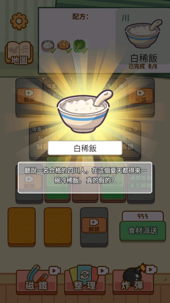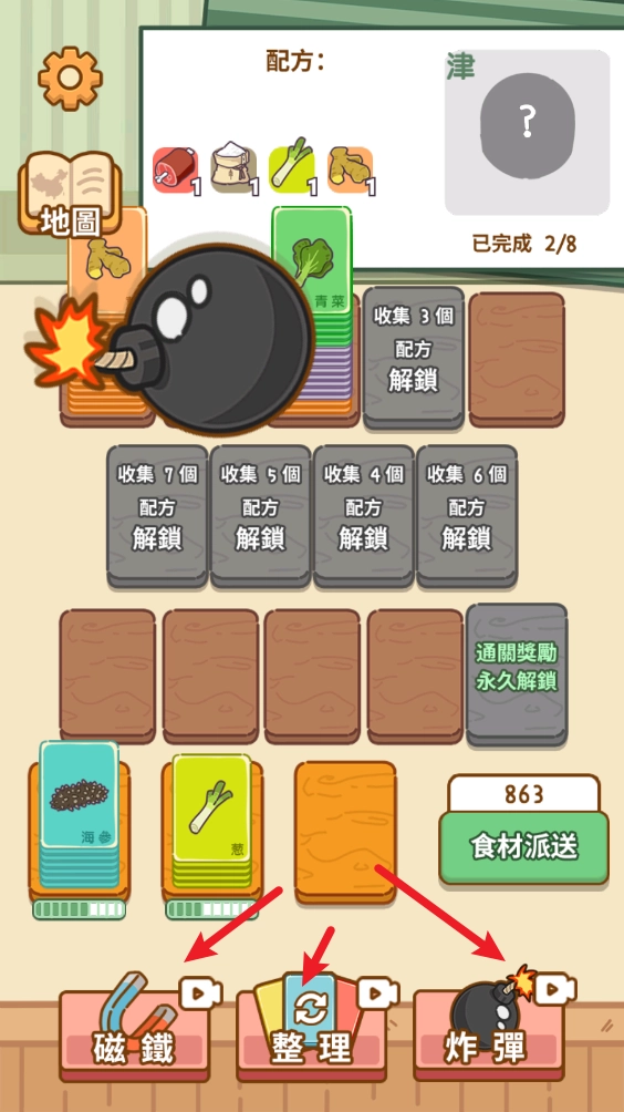 2、不需要复杂的操作,通过简单的叠砖块玩法就能帮助你获得食材,成功的解锁出各种拿手菜!