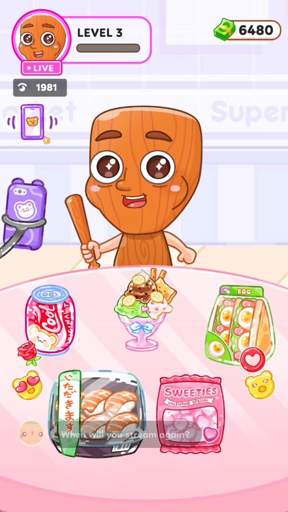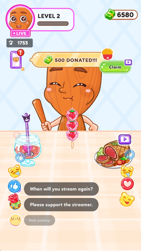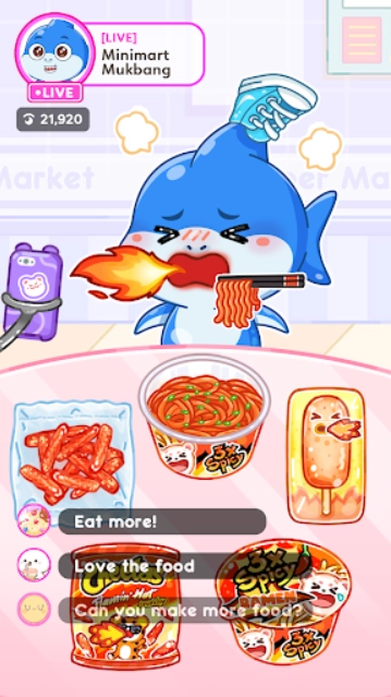 2、每一场直播都能够获得奖励,并提升你的等级,去解锁更多的新食物,去制作各种更加美味的食物,带来更多的吃播表演。