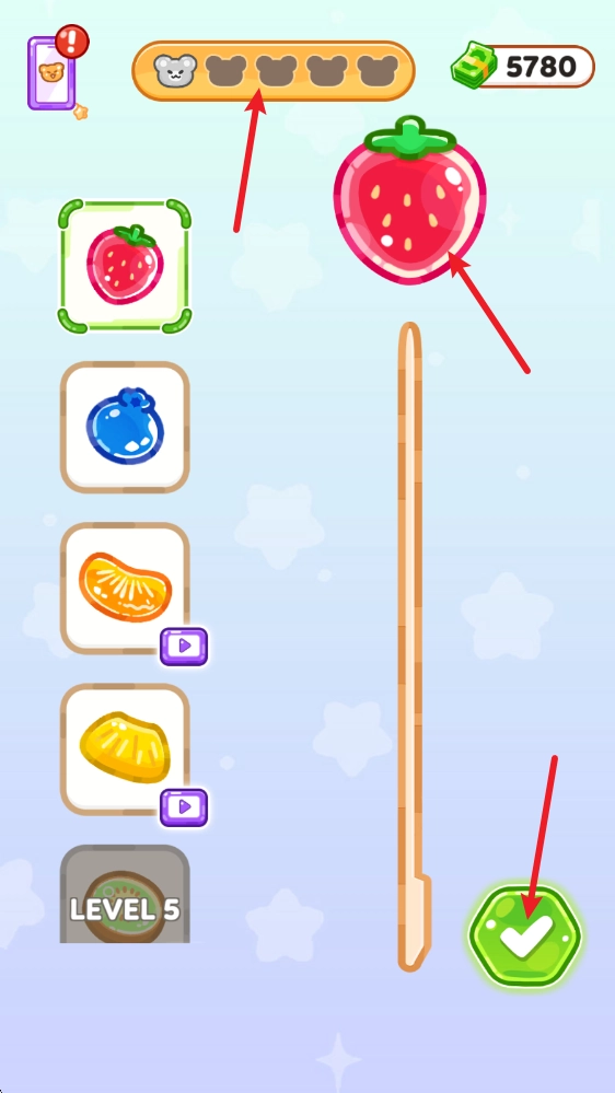 3、首先我们可以先制作一串糖葫芦,选择合适的水果串起来。