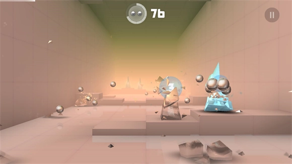 《急速冲击》(原名Smash Hit)是一款以弹珠摧毁障碍为核心玩法的休闲闯关游戏。游戏中,玩家需跟随音乐节奏,粉碎沿途所有障碍物,一路向前推进。过程中会切换不同关卡,每个关卡都设有全新场景与背景音乐。通过摧毁障碍物可获取更多弹珠,持续前进以积累更高分数,完成挑战目标。