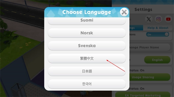 3、然后下滑点击language选项中的English,然后选择繁体中文。