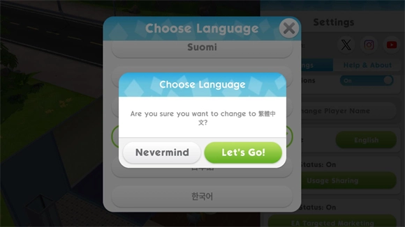 4、点击繁体中文后选择lets go按钮就可以将游戏切换成中文了。