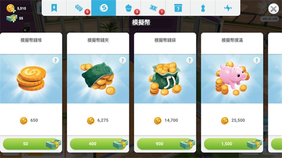 1、完成游戏里的任务可以获得模拟币,点击右下角的日历按钮可以查看当前可以完成的任务,完成后就能获得模拟币和绿钞奖励。
