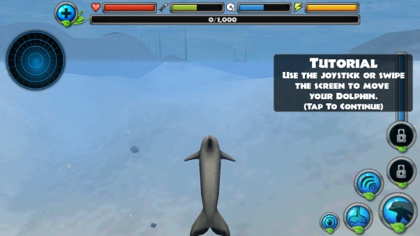 像海豚一样跳出水面,轻扫屏幕来表演后空翻和反转360度等技巧!利用回声定位捕捉鱼类和水下捕食者!