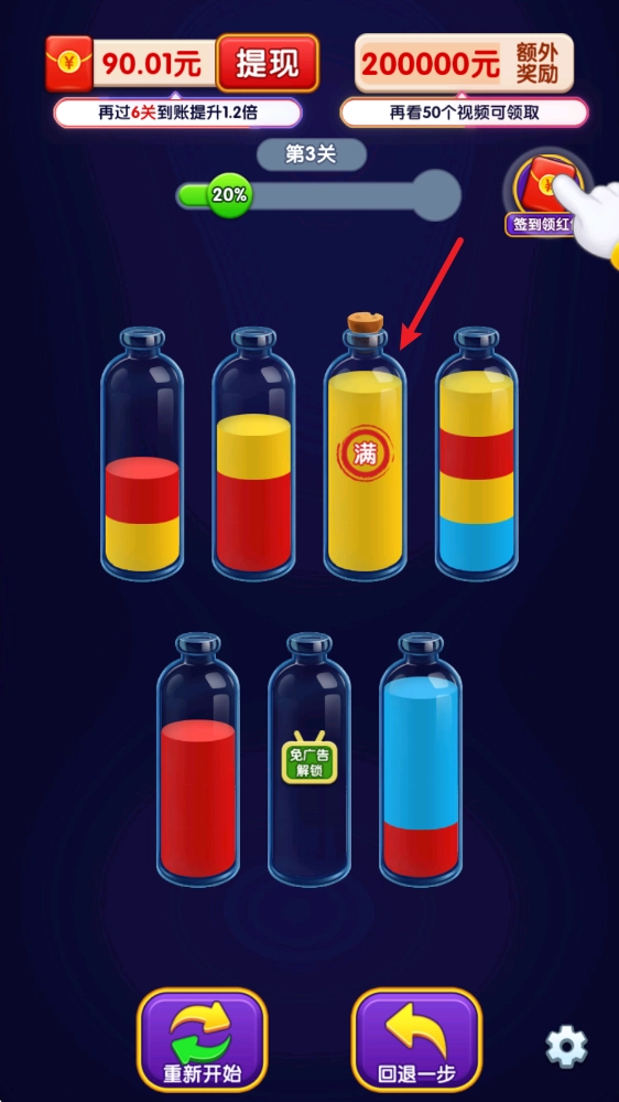 3、成功装满了所有液体后就可以顺利过关,获得不错的奖励。