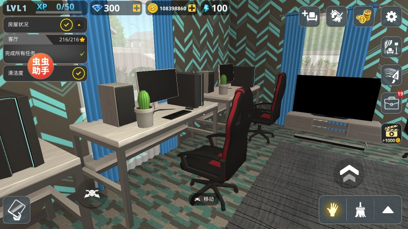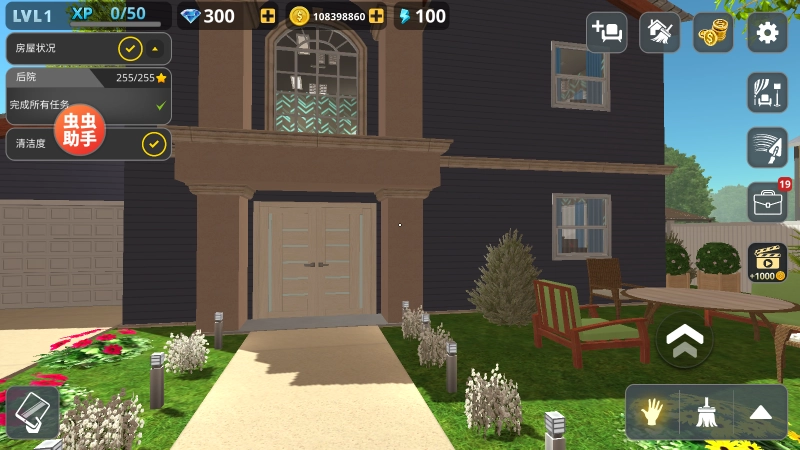 1、先启动第一个任务——清扫房间,点击右下角的工具,把它切换成扫帚。