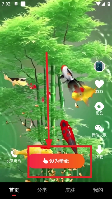 2,进去就是动态壁纸,超级吉祥的画面,点击这里就可以了