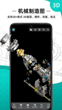 三维图纸浏览:支持查看rvt、stp、step、prt、sldprt等几十种三维格式图纸,及测量、旋转、剖切、爆炸等操作,方便用户查看三维图纸的效果,进行三维模型的观察和分析,帮助用户更好地理解设计的空间结构。