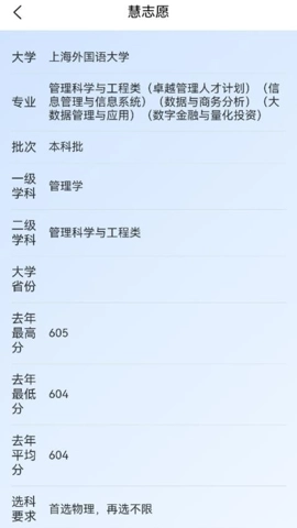2、在信息查询方面,慧志愿提供全国各高校、专业的详细介绍,包括招生计划和历年录取分数线等数据。